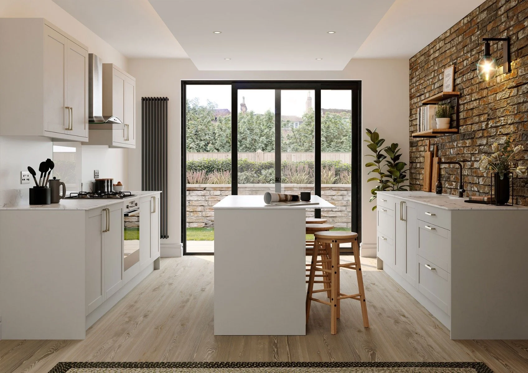 Clever kitchen design allows an island to be incorporated into most rooms and to be combined as a dining and cooking space.